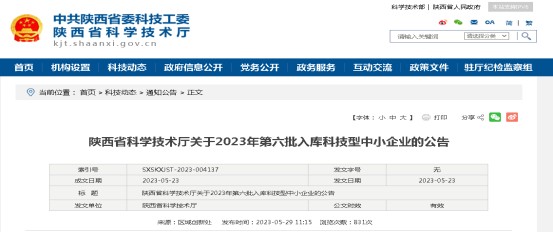 近日,陜西省科學(xué)技術(shù)廳公布了“陜西省2023年第六批入庫科技型中小企業(yè)名單”,陜西愛科仕精密科技有限公司順利通過認定,成功入庫。科技型中小企業(yè)是科技部授予的資質(zhì)備案,是企業(yè)創(chuàng)...