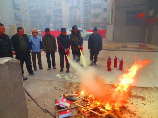 春節將至,為確保210小區的安全,咸陽二一零物業管理有限責任公司,于2015年2月6日在小區組織了一場消防滅火演練,許多小區業主現場進行了觀摩。上午8:50在12#樓前空地處,由小區安全員孟貴山同志就滅火器的構成、作用及怎樣使用滅火器等相關知識講解并現場示范。事前物業公司對消防演練進行了周詳的安排:要求參加演練的所有人員聽從安排,服從指揮,讓每個職工親身實踐正確使用滅火器滅火。參加的人員包括門衛、車棚、巡邏、保潔等各部門的員工。9:00,點火人員點燃了熊熊烈火,消防滅火演練人員3人一組,分為3個組,第一組人員提著滅火器沖到離火焰約2米處對準熊熊烈火的根部進行高壓噴射,火勢迅速被控制,后面兩組依次輪流進行滅火演練,最后火焰被徹底熄滅了。整個過程緊張有序,取得了較好的效果,受到在場業主的一致好評。通過本次消防演練,進一步增強了小區住戶的安全防范意識、完善了消防預案、提高了消防應急救援水平。