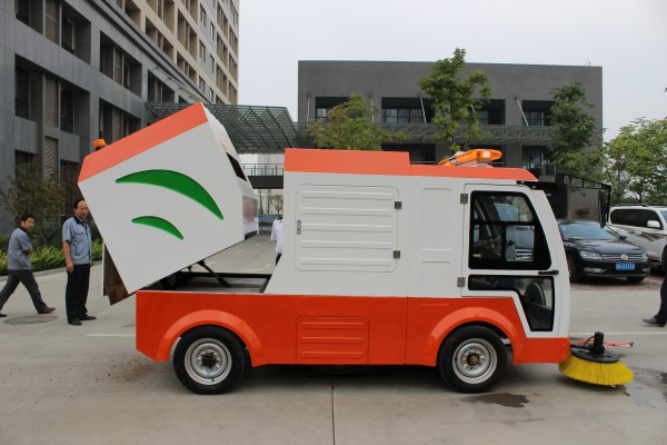 核昌公司在2014年與咸陽市公路局合作研發(fā)生產(chǎn)的第一代電動清掃車,于2015年6月將15臺電動清掃車成功交付。以此為契機,在第一代的基礎(chǔ)上進(jìn)行技術(shù)改進(jìn),提高了機械零部件加工精度,車輛行駛更加平穩(wěn),上料機構(gòu)結(jié)構(gòu)簡化并增加防塵,減小了工作噪音,電機的可靠性得到改進(jìn),大大減少了非作業(yè)時段對機器必要的磨損,極大延長機器使用壽命。第二代電動清掃車于2015年8月23日成功誕生,經(jīng)廠內(nèi)測試基本功能運行正常,8月24日2臺電動清掃車在中陜核工業(yè)集團(tuán)公司進(jìn)行現(xiàn)場演示,使用效果良好。