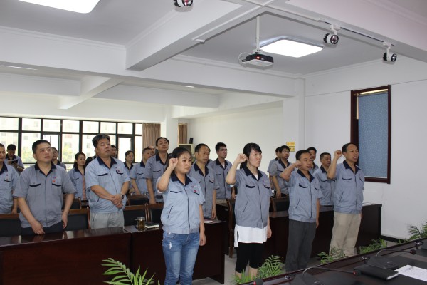 組織一次預備黨員入黨宣誓活動。7月1日,2016年新發展的3名預備黨員在公司大會議室,面向黨旗,鄭重宣誓。