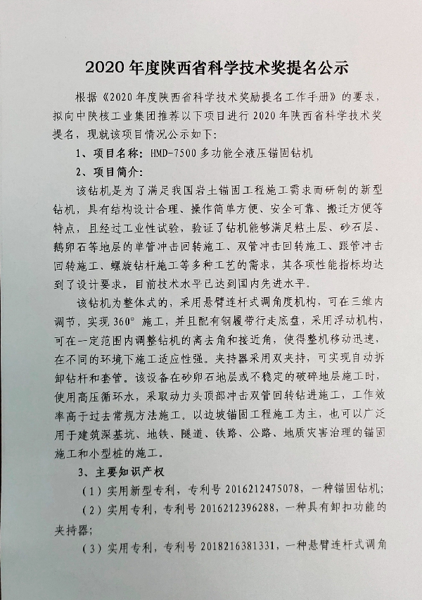 2020年度陜西省科學技術獎提名公示